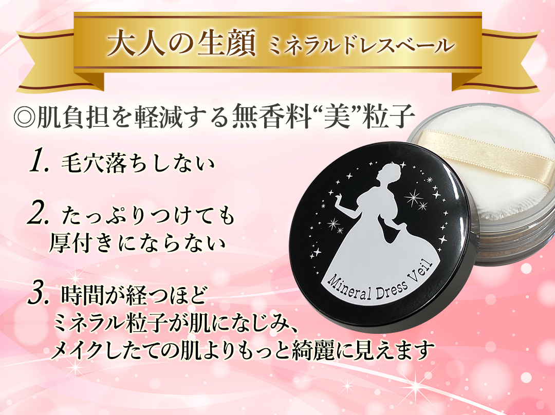 花粉アレルギーで目の周りが赤くなってどんなファンデでも赤みが消えなかったのでですが、ミネラルドレスベールを使ったら綺麗に無かったことに。目の印象がガラリと変わり嬉しいです。肌の難点をこんなに自然にカバーできるとは、びっくりでした。